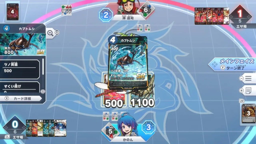 ゲーム内で行われるカードバトルは、原作カードゲームのルールに忠実に則っているので、『蟲神器』の基本的な遊び方や、各カードのスペックや使い方などを、遊びながら身につけることができます。