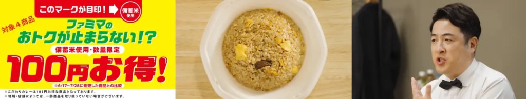FamilyMartVisionにて「備蓄米使用で100円お得な商品を数量限定で発売!」も放映中!