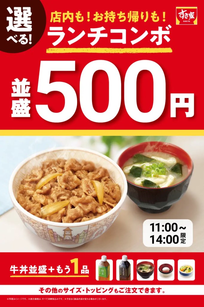 牛丼並盛ともう1品で500円!すき家「選べる!牛丼ランチコンボ」販売