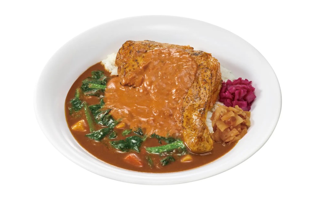 同時に、彩り豊かなほうれん草をトッピングした「ほうれん草バターチキンソースカレー」と、ほくほくのフライドニンニクをのせた「にんにくバターチキンソースカレー」も販売します。