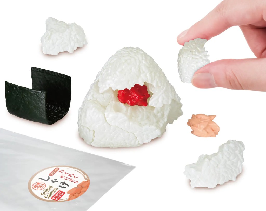 「解体パズルLite」 は、本物そっくりなリアルな造形にもこだわっているシリーズです。おにぎりの表面にはお米の粒やごはんのつや等のリアル感がありつつ、完成したおにぎりには可愛らしさも感じられます。