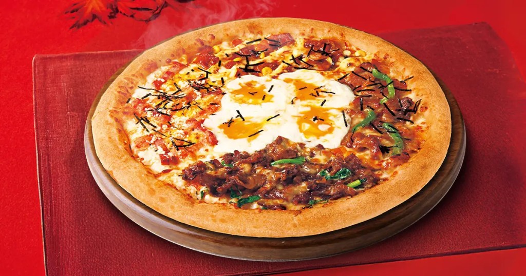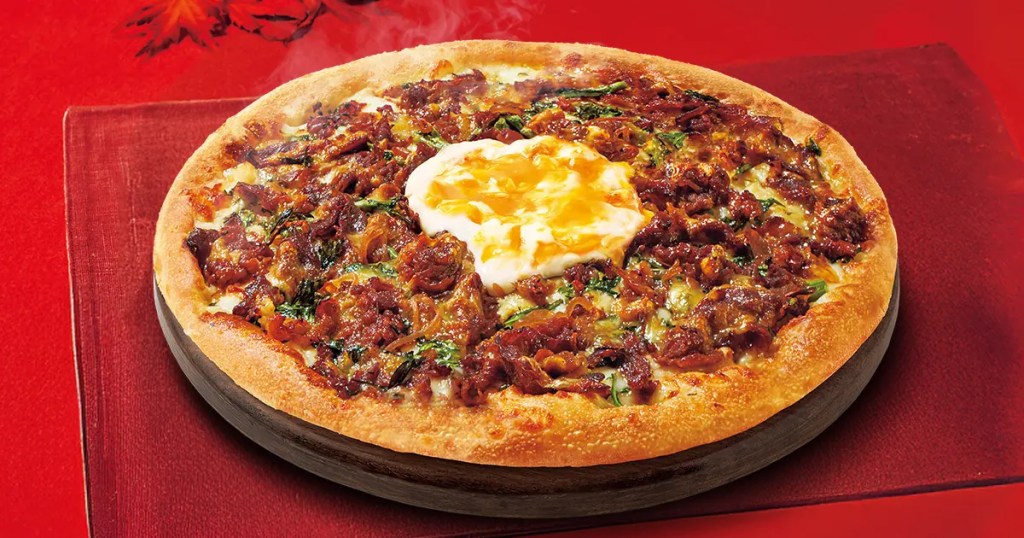 【すき焼き月見ピザ】日本の伝統料理「すき焼き」がピザになって新登場!