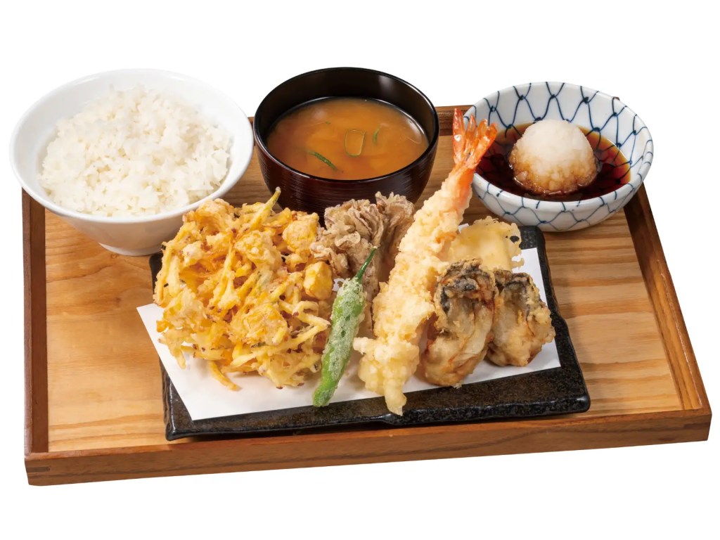 利用者のスタイルに合わせて楽しめるよう、丼ぶりのほか、天ぷらとご飯を別々で味わえる定食や、家庭でも楽しめるお弁当、食卓の一品に最適な天ぷらの盛り合わせも用意しています。