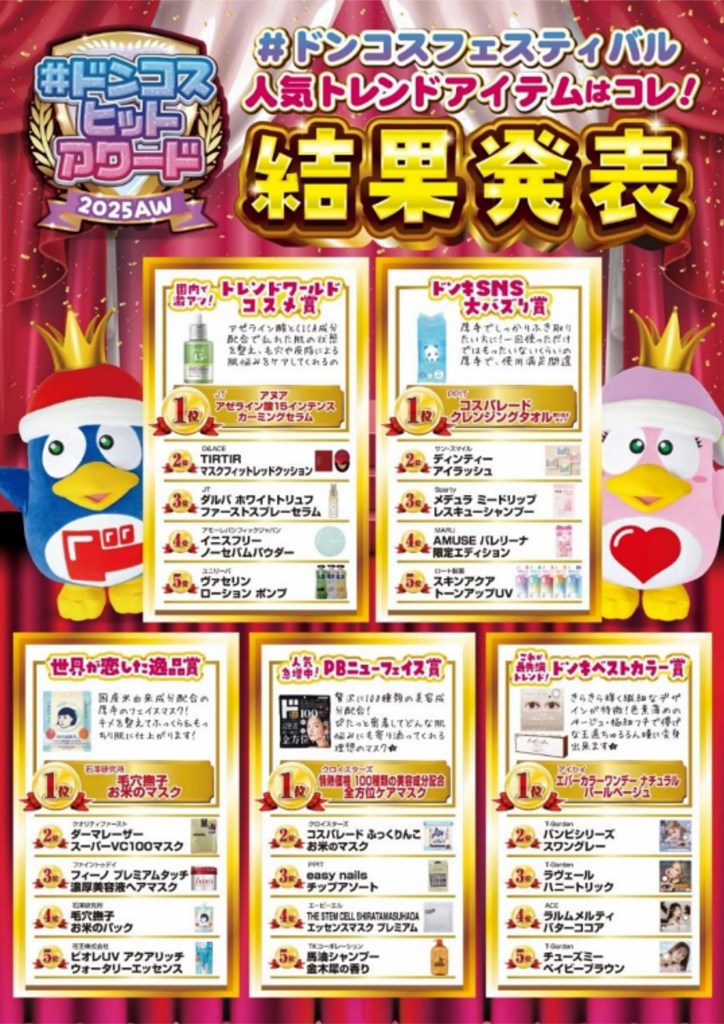 ドン・キホーテが人気コスメランキングを発表!「#ドンコスヒットアワード 2025AW」開催
