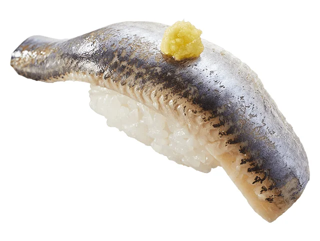 店内で丁寧に皮と骨を処理し、ネタにしています。脂がたっぷりのった濃厚な旨みのいわしに生姜をあしらい仕上げました。
