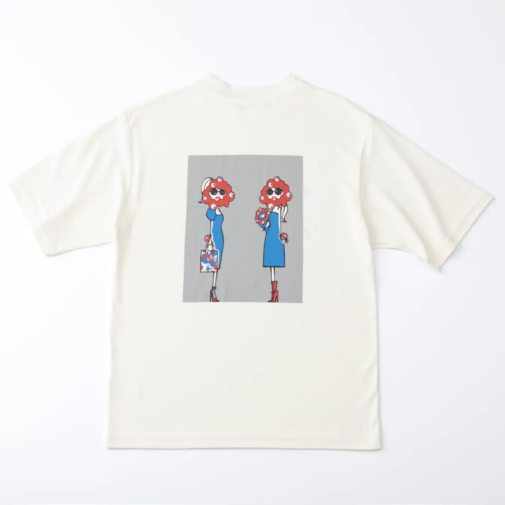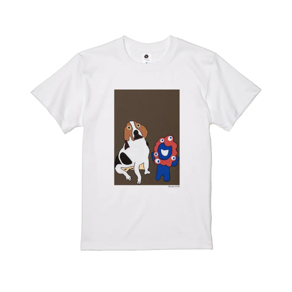 人気アーティストHime氏と三浦大地氏が「ミャクミャク」をイメージして制作したアート作品は、オフィシャルストアで原画がすぐに完売するほどの人気を誇ります。この人気作品を和紙糸を配合した素材でつくられたTシャツにプリントしました。