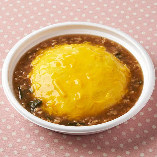 【内容】背脂を加えることでこってり感を出した炒飯に、ふっくらと焼き上げた玉子を乗せました。豚肉、ニラなどを使用したガラスープ仕立てのそぼろ餡をトッピング。天津飯で丸い月を表現しました。