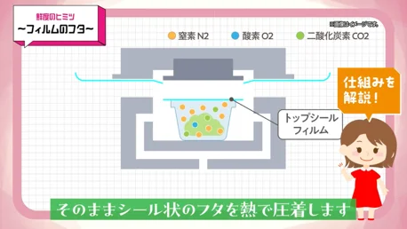 セブン‐イレブンのカップデリは、おいしさはもちろん、鮮度にもこだわっています。調理時間の短縮に努めるとともに、ふた部分をフィルム化。商品の劣化原因となる酸素量を減らす「トップシール」の仕組みを導入しています。