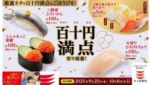 笑顔も"百十円満点"になれる豊富なラインアップ コロワイドグループのかっぱ寿司は、2025年9月25日(木)~2025年10月8日(水)の期間、「百十円満点祭り」をかっぱ寿司全店にて開催します。 実りの秋・味覚の秋に、旬 […]